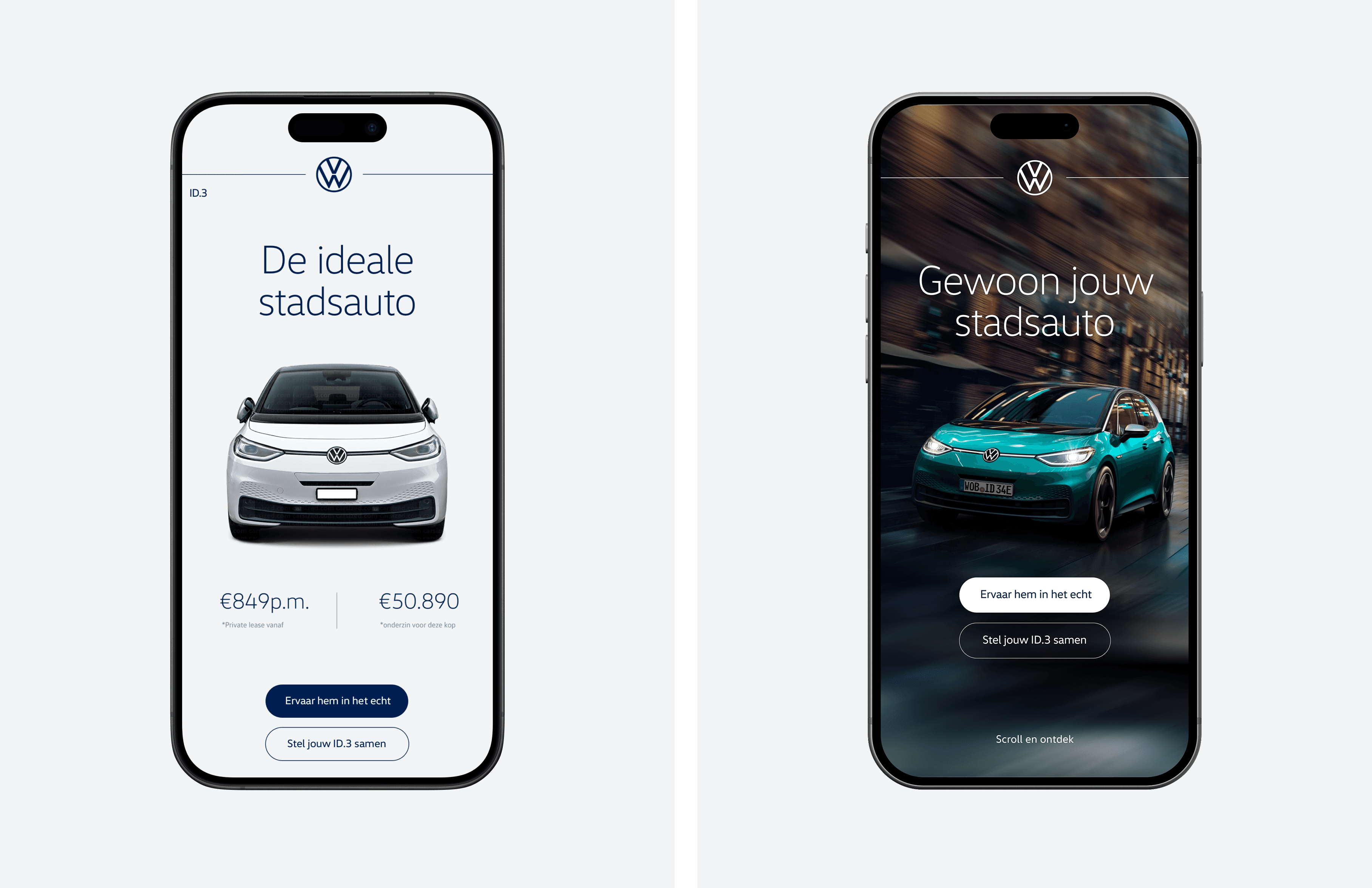 A strong brand heritage formed the foundation for a new strategic direction. Looking back at Volkswagen’s past, we explored conceptual design, digital experiences, campaign ideas and an evolving visual language for Volkswagen Nederland, working closely with and challenging the digital marketing team as a creative sparring partner. Created while working at Valtech Europe.